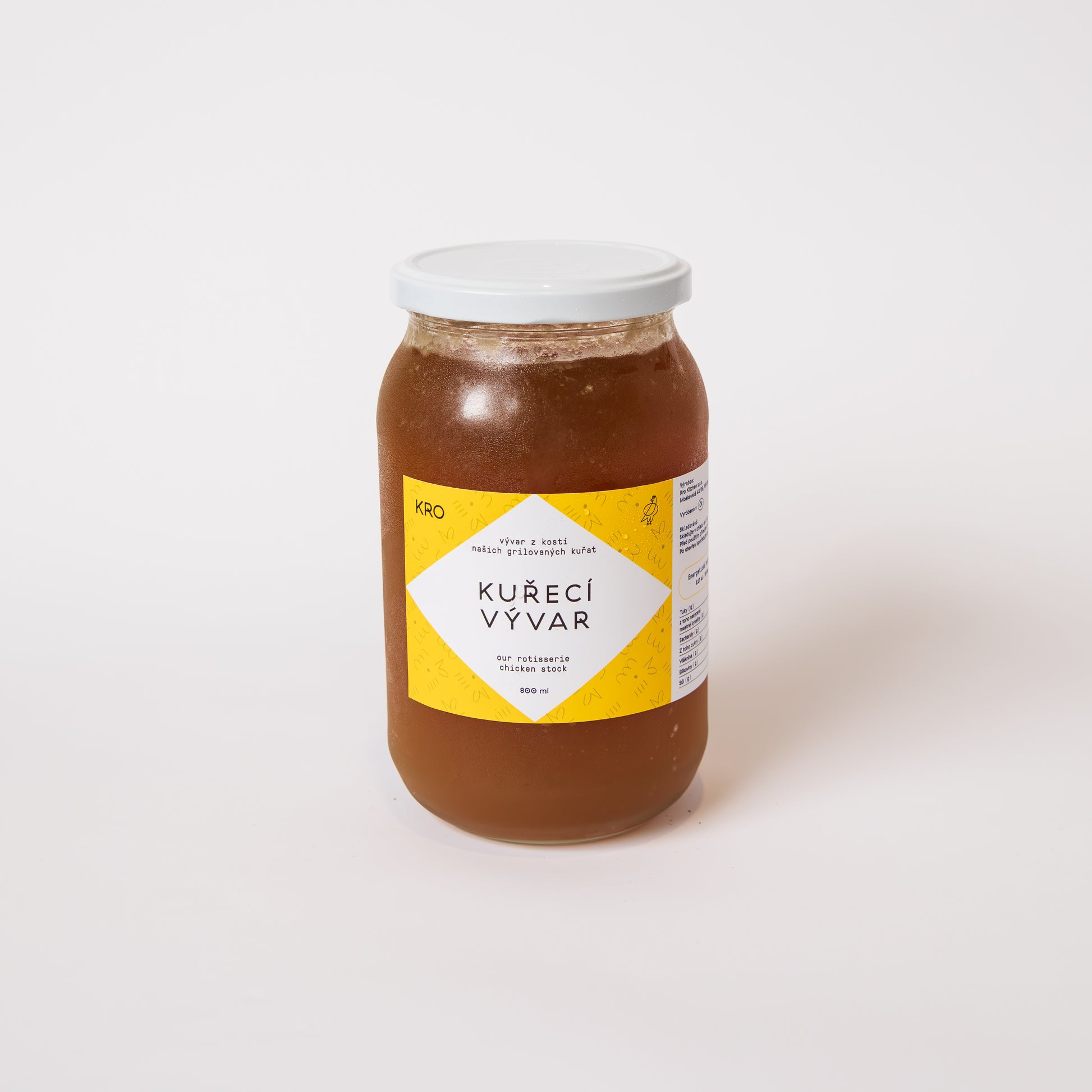 Poctivý kuřecí vývar, jehož základem jsou kosti z kuřat grilovaných v rotisserii ochucených naším signature kořením.